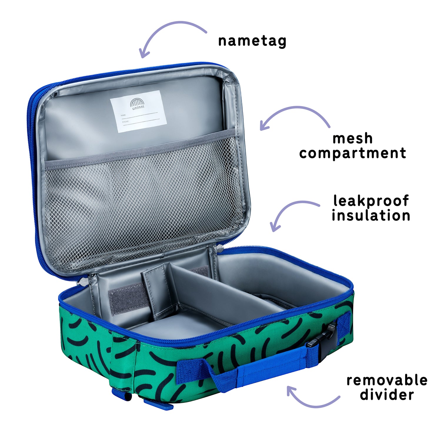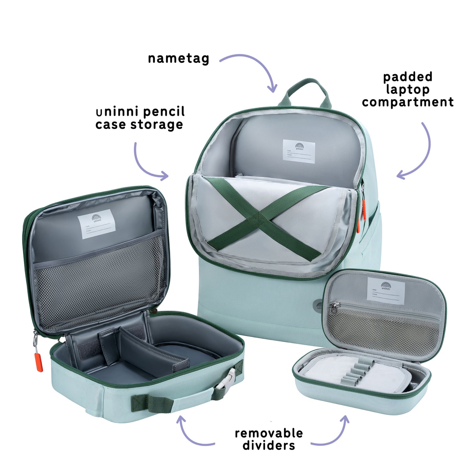With elastic straps for the uninni pencil case and attachment buckles for the lunch bag, your kid can run, jump, and play while their backpack holds everything for them.